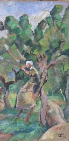 André CHAPTAL naît à GENOLHAC en 1906. Il est issu d'une vieille famille cévenole, son grand père Léon était éleveur de vers à soie. Son père Louis était alors liquoriste à Marseille, l'activité de la magnanerie ayant cessée. Cette demeure et son environnement seront pour le peintre une source d'inspiration permanente. Déjà tout jeune, il savait qu'il voulait être peintre. Parallèlement à des études de droits à Aix-en-Provence, il fit les Beaux - Arts à Marseille, où il est l'élève de Louis Maistre puis revint définitivement à GENOLHAC. Cela ne l'empêcha pas d'exposer aux Tuileries et dans des lieux tout aussi réputés. Pour la petite histoire, C'est André CHAPTAL qui initia Jean Pierre CHABROL au dessin, ce qui permit à ce dernier de devenir caricaturiste du journal l'Humanité avant de devenir écrivain.
